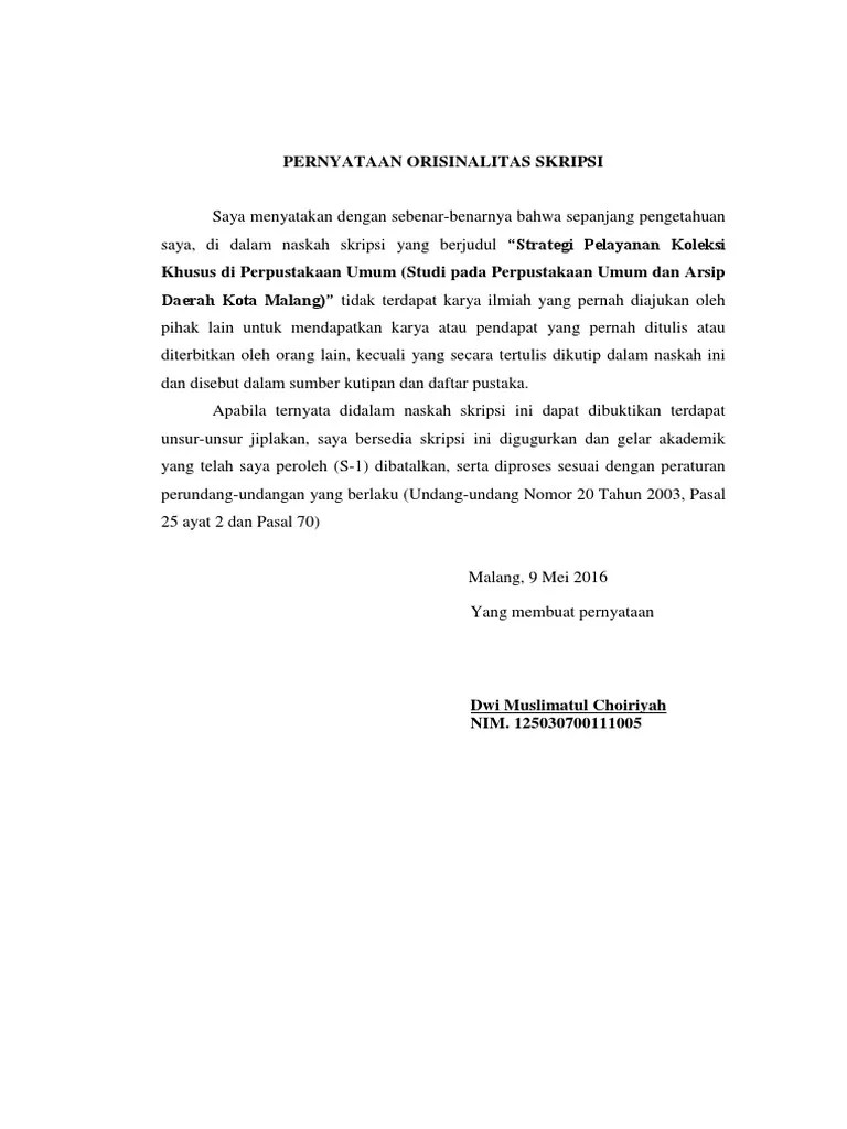 Saya yang bertanda tangan bawah ini, mahasiswa fakultas ilmu. Isi form yang disediakan pada aplikasi pdf. Saya yang bertanda tangan di bawah ini: Mewakili kelompok saya yang bernama. Berikut ini contoh surat pernyataan keaslian skripsi yang umumnya dipakai di perguruan . "pemahaman kesadaran sejarah melalui situs jalur. Dengan ini saya menyatakan bahwa tesis saya yang berjudul. Contoh surat pernyataan keaslian tugas akhir. Yang bertanda tangan dibawah ini : Yang bertanda tangan di bawah ini : Berikut beberapa contoh yang bisa kamu jadikan sebagai referensi untuk membuat skripsi mu lebih . Ilustrasi contoh surat pernyataan, sumber gambar: Bagaimana cara penulisan lembar pernyataan keaslian skripsi?